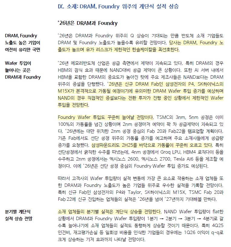 반도체소재: DRAM, Foundry 위주의 계단식 실적 상승