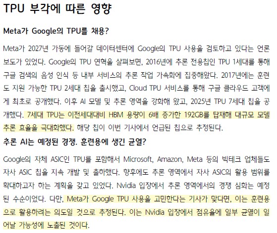 [ 하나증권 김록호] TPU 부각에 따른 영향 [2025.11.26]