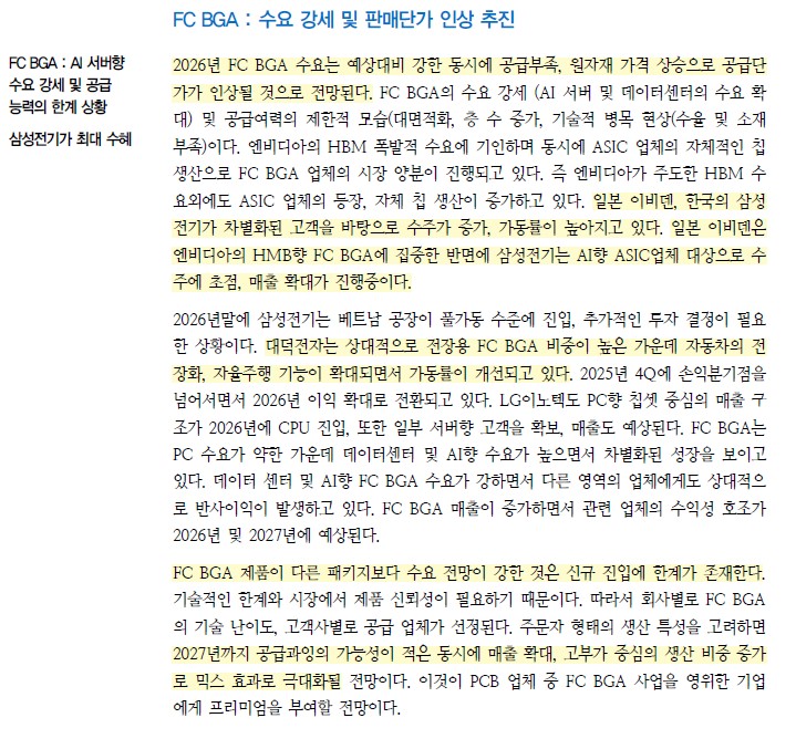- 단, 국내 서버용 FC-BGA 사업을 영위하고 있는 기업은 삼성전기가 유일하며 글로벌 업체로는 일본의 이비덴(4062 JP), 신코(6967 JP)가 있다.