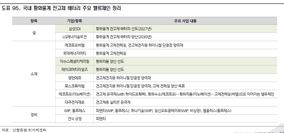 전고체 배터리 기업 동향 / 황화물계 전고체 배터리 밸류체인